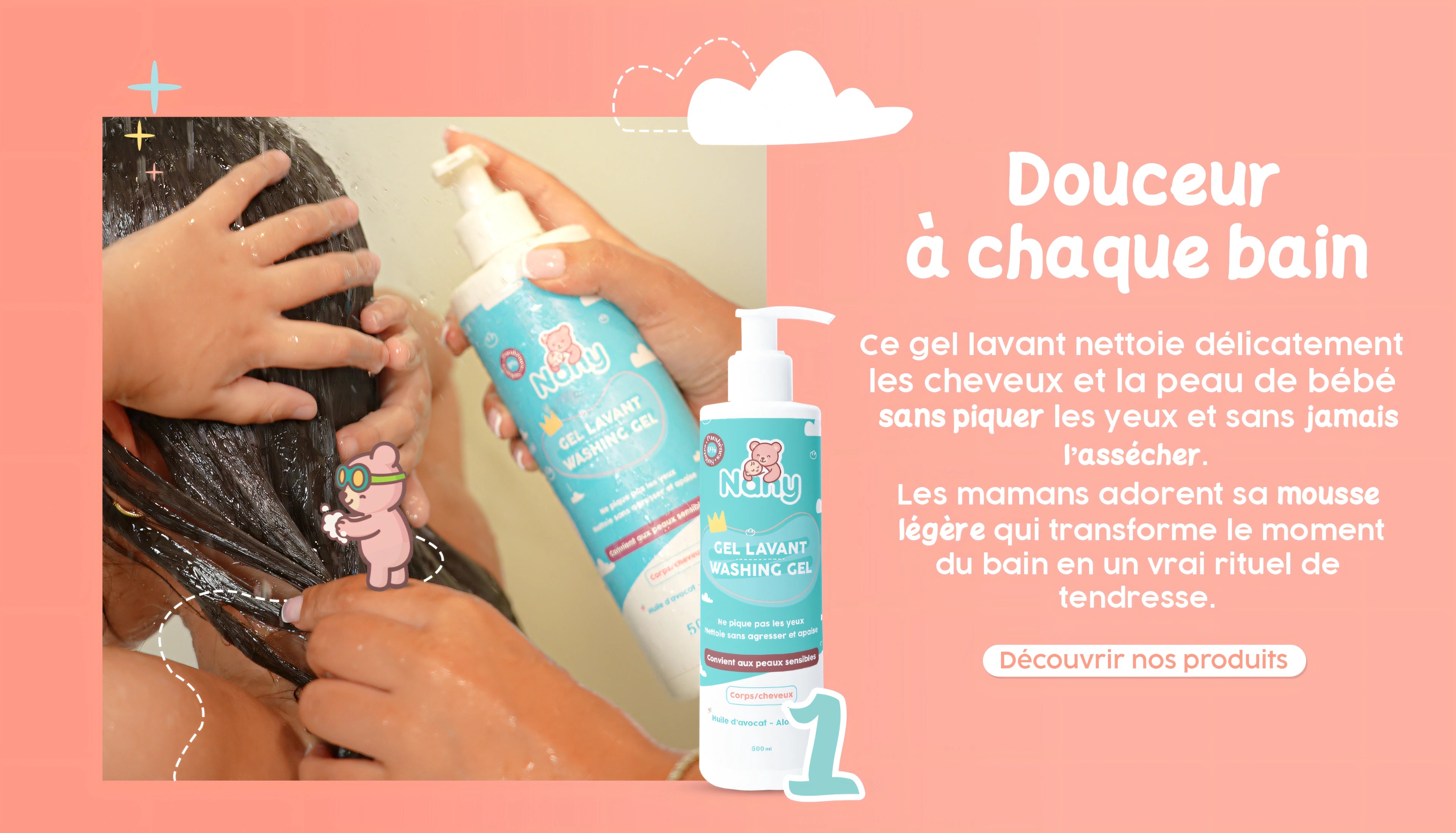 Des parents affirment que le gel lavant NANY laisse la peau de leur bébé douce et protégée.
